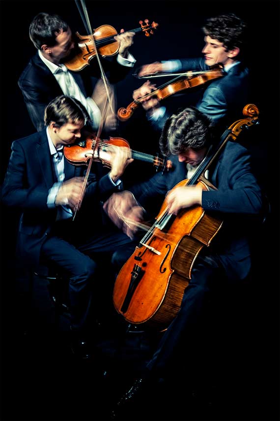 Le premier récital s'ouvrait par le 3e quatuor de Schulhoff, écrit à Terezin. D'une dynamique intense, il commence dans un climat qui pourrait être ravélien, n'était l'éclair de la diminution violente du premier violon. Les échanges conduisent à une danse parodique, grotesque, la puissance, la force, mais aussi un intense lyrisme caractérisent la suite. Le quatuor Bennowitz, qui atteint prochainement sa majorité puisque fondé en 1998, y fait montre d'une maturité épanouie, usant à propos de toute la riche palette de couleurs et de nuances qu'exige cette œuvre. La Fantaisie et fugue que Gideon Klein écrivit également à Terezin, requiert une technique superlative. Le sujet de la fugue, réduit à 5 notes, permet une riche polyphonie. La pureté de l'intonation, les couleurs chatoyantes nous ravissent. On ne sait qu'admirer le plus : la perfection du jeu ou celle de la musique qu'il sert à merveille… Ce sont les Cinq pièces de Schulhoff, écrites en 1923, dont la séduction est immédiate, qui s'écoutent avec le plus de facilité. À la manière d'une suite, quatre des pièces sont une danse (valse viennoise, danse tchèque, tango et tarentelle), une sérénade s'intercalant après la valse. Écrites dans l'air du temps, elles n'en sont pas moins révélatrices d'une rare qualité d'invention. Que préférer, si l'on devait choisir ? Peut-être le tango, très stylisé, qui n'en conserve que la rythmique, avec un phrasé et une élégance singuliers. La musique semble incertaine, très mittel-europa, jusqu'à ce que le pathos gagne et que la mélancolie confine au soupir désespéré. Ou bien la tarentelle endiablée, digne d'un Rossini du XXe siècme, proche aussi du motorisme de Different trains de Steve Reich ? Extraordinaire dans tous les cas.