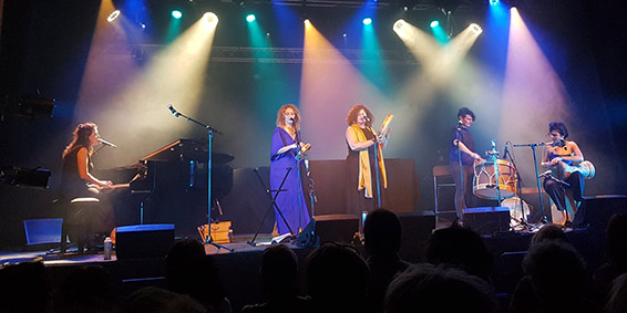 Autre belle découverte le soir, sous le petit chapiteau de Saint-Vaast, les Dames de la Joliette, venues de Marseilles, cinq chanteuses percussionnistes représentant différentes voix de la Méditerranée jusqu’au Brésil et l’Arménie, un beau travail poétique composé et arrangé par Gil Aniorte Paz.