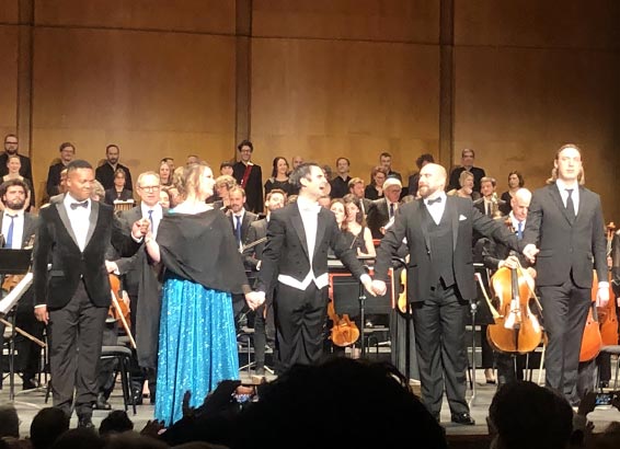 On attendait beaucoup de cette version de concert des Puritains, d’abord pour la présence — rare à Paris — de Jessica Pratt dans un rôle où elle s’est abondamment illustrée et dont elle est actuellement une des meilleures spécialistes. Dès son entrée en scène, l’osmose est évidente avec le personnage qu’elle incarne plus encore qu’elle ne l’interprète, le faisant exister par sa présence, ses mouvements et ses regards, se passant de la partition qu’elle connaît évidemment par cœur. Techniquement sa performance est au-dessus de tout éloge, même si quelques petites baisses de régime se font sentir, çà et là, dès que le rôle descend un peu trop dans le bas médium. La colorature est magnifiquement maîtrisée et elle offre dans la reprise de la cabalette de la scène de la folie d’Elvira un jeu de variations inédites de son cru, se révélant toujours d’une grande expressivité.