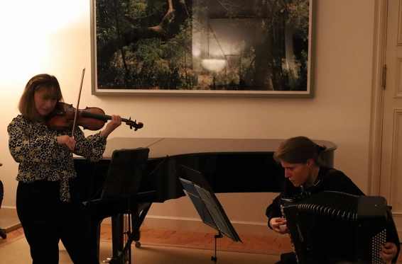 Le cadre de ce concert était parfait, pour cette musique bien adaptée au salon, certes bourgeois, mais qui peut être aussi brillant et raffiné que gros sabots. Ici, un beau salon du champ de Mars Paris, dans un immeuble construit à une époque où la bourgeoisie ne se croyait pas seulement être la fin de l’histoire mais l’histoire elle-même, se mettant en scène entres colonnades gréco-romaines et évocation versaillaise de la Galerie des Glaces.