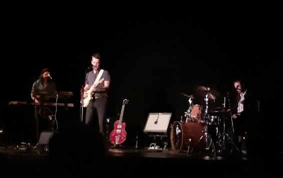 Le groupe de pop psychédélique Fosse, venu de l'Orne, jouait en trio à Caen ce jeudi à l'invitation des bibliothèques Maladrerie-Venoix. Mené par le guitariste Christophe Blanchet aux textes et compositions, accompagné par Michaël Roth aux synthés et Nicolas Brusq à la batterie. Pour ce nouveau projet musical, le guitariste a abandonné l'anglais pour le français, ce qui lui permet de travailler plus sur les jeux de sons et de sens de ses textes à la poésie répétitive. Après un EP en 2022, le groupe vient de sortir en mars l'album Entre les roches chez TFT, label basé à l'Aigle dans l'Orne, soutien de nombreux groupes régionaux. Ce concert leur a permis de jouer l'ensemble de leurs titres, où la voix grave du chanteur est enluminée par les accords et arpèges de claviers, aux solos bien soutenus de façon rock par la guitare rythmique et la batterie. Versant ouest, Avalanche, Phoenix, Dauphins, Incendie, De nombreux voyageurs, Blizzard, Entre les rêves... Une pop atmosphérique qui révèle un chanteur, originaire de Lyon, pour qui la montagne reste un horizon mélancolique. Que les musiciens transforment en paysages musicaux à découvrir au milieu de tant d'insipidités en anglais.