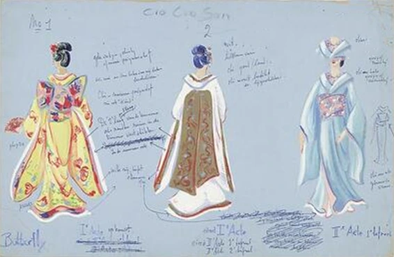 Maquettes de costumes pour Madama Buttertfly, par Wim Vesseur, 1957.