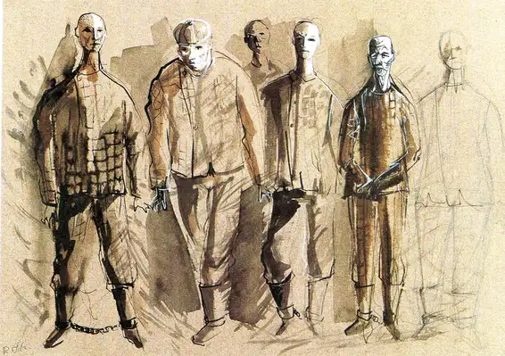De la maison des morts, croquis de costumes de Rudolf Schutz, Hanoover, 1958.