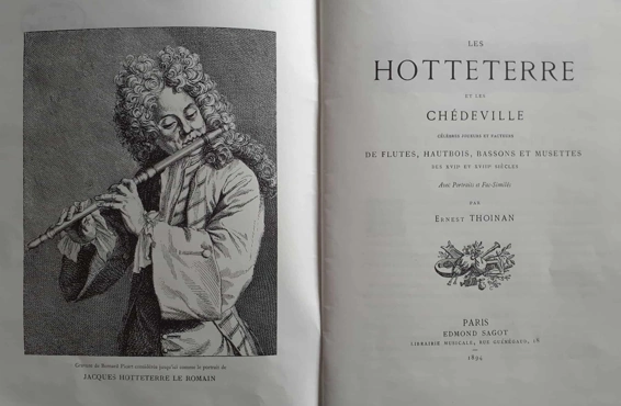 Thoinan Ernest, Les Hotteterre et les Chédeville : célèbres joueurs et facteurs de flûtes, hautbois bassons et musettes, Edmond Sagot, Paris 1894 ; Zurfluh, Paris 1979 (fac-similé), Éditions xix, Québec 2016.