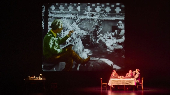 Des archives photo et vidéo éclairent le contexte historique et le parcours des deux protagonistes, allant jusqu’à utiliser l’intelligence artificielle, pour montrer l’attirance de Frida envers son invité, ou l’homme colorisé caressant sa chienne, ou son visage se déformer dans la souffrance et la mort. Mais il faudrait peut-être informer plus le spectateur de ce mélange entre images d’archives, ou fabriquées par l’IA à partir des précédentes. Seule une ligne en caractères minuscules le signale en bas de la première page du programme, sous les indications de coproduction et de soutien. Il vaudrait mieux l’indiquer clairement dans la présentation du spectacle. Car ce travail vidéo est vraiment réussi.