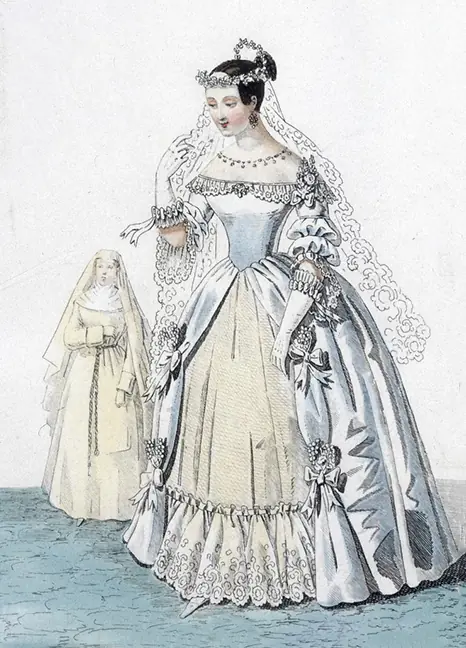 Costume de Mme Cinti-Damoreau (rôle d'Angèle), dans Le Domino noir, Martinet, Paris 1837.