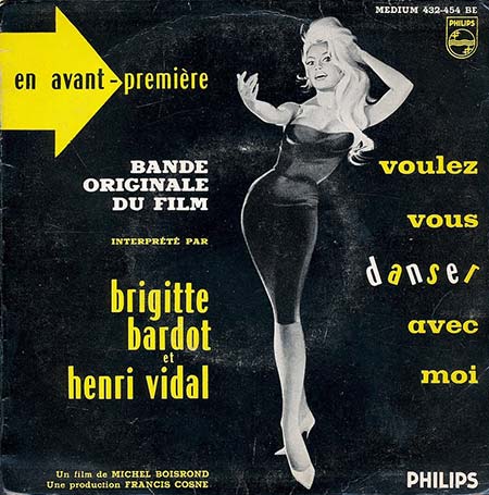1960. Musiques du film de Michel Boisrond, « Voulez-vous danser avec moi » (Crolla et Hodeir). Henri Renaud, Pierre Michelot, Christian Garros, Christian Bellest ; Voulez-vous danser avec moi ?, La licorne, Janik and Jo, Cha-cha flores, Tension mambo. 45 t., 17 cm, PHILIPS 432.454.