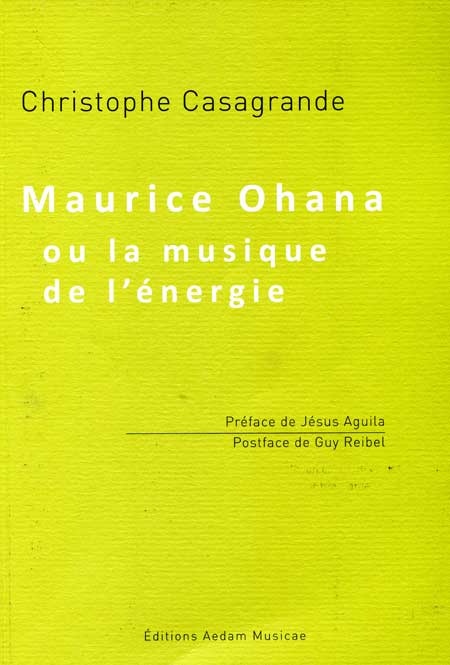 Casagrande Christophe, Maurice Ohana ou la musique de l'énergie (préface par Jésus Aguila, postface par Guy Reibel). Éditions Ædam Musicæ, Chäteau-Gontier 2013 [210 p. ; ISBN : 978-2-919046-14-0 ; 20 €]