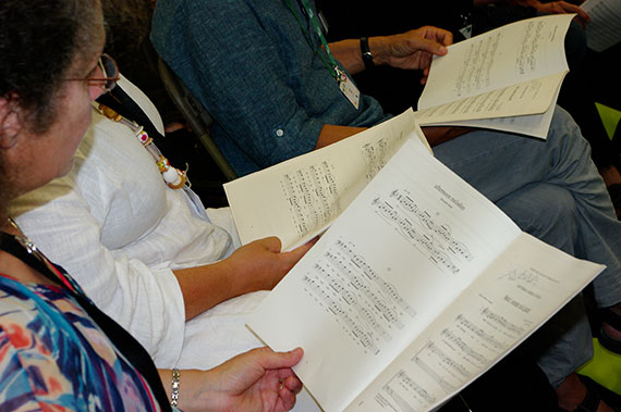 Jean Carpenter explique et interprète le Gospel. Photographie © À Cœur Joie.