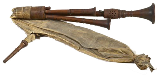 Biniou Kozh breton (ancienne cornemuse), Dorig Le Voyer, Ploermel, 1951, appelé ainsi pour le différencier du biniou joué depuis le milieu du 20e siècle, s'apparentant à la « grande » cornemuse militaire écossaise, le biniou bras.