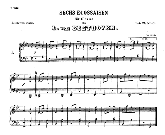 Ces écossaises (toujours en français), n'ont pas eu une grande postérité, mais des compositeurs de renom en ont composé quelques séries : Johann Nepomuk Hummel, Ludwig van Beethoven, Franz Schubert, Frédéric Chopin...