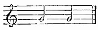 Je partage son opinion d'autant plus volontiers que j'y trouve une phrase mélodique qui a été admise dans le culte chrétien dès le deuxième siècle, et qui est chantée dans tout le monde catholique, chaque dimanche, dans la Préface de la Messe. On remarquera que cette phrase mélodique se trouve dans la première et la troisième ligne de l'exemple. Tout en prenant cette récitation dans l'ouvrage intéressant du ministre, je n'ai pas adopté sa division isochrone à quatre temps, qui me paraît incompatible avec toute récitation en général, et surtout avec une mélopée antique. En outre, j'incline à croire que le sol