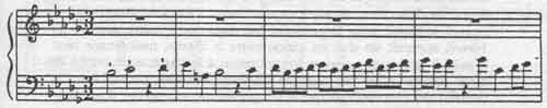 Il existe également des moments dans ses œuvres où la continuité linéaire est d'une telle ténacité qu'il est impossible d'y trouver la moindre cadence clairement articulée. Par conséquent, elle ne permet pas de modification convaincante du toucher qui serait l'équivalent au clavecin de la mise en œuvre d'un jeu de luth ou d'un changement de clavier.