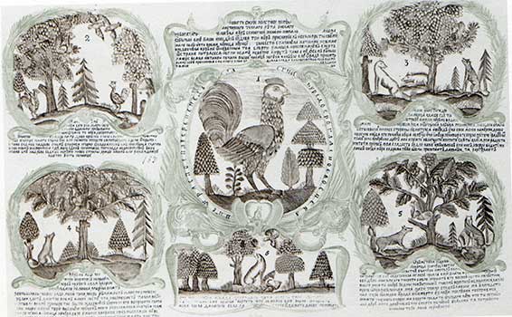 Nouvelle du Coq et du Renard flatteur (gravure du XVIIIe siècle). Rome, Novosti..